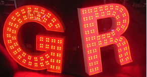本公司開發的超高亮、低光衰外漏銃孔LED發光字,是本公司重點推廣產品,特別是四燈模組外漏銃孔LED發光字,亮度尤為突出,深受客戶喜愛。